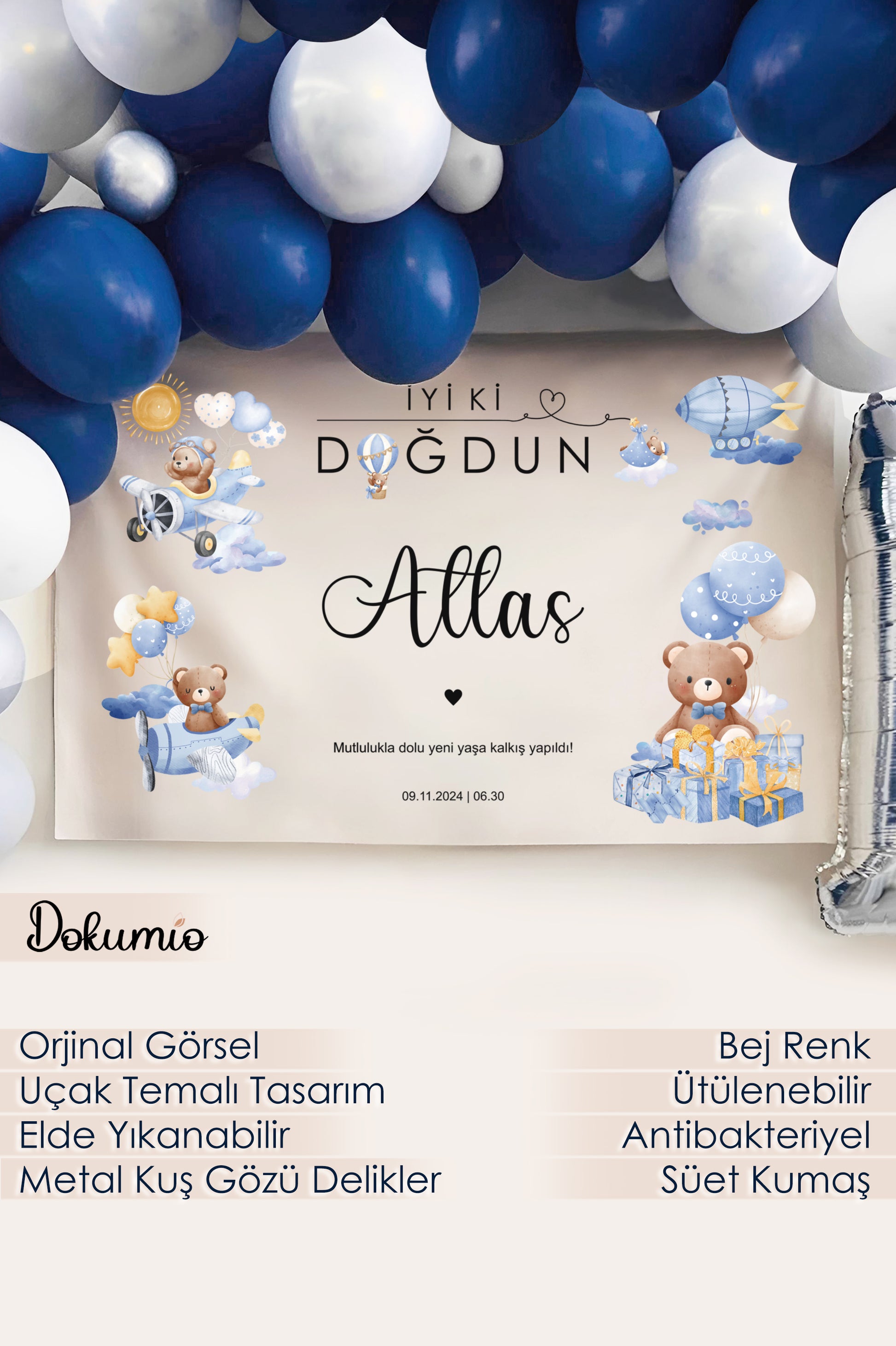 Kişiselleştirilebilir Uçak Pilot Gökyüzü Temalı Doğum Günü Örtüsü (#124)